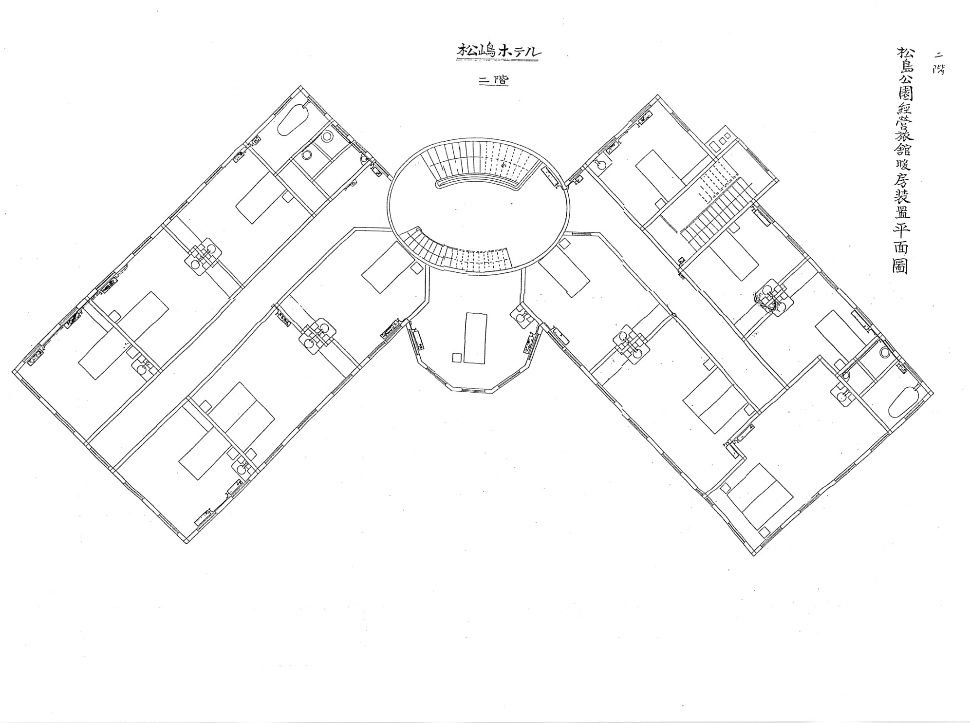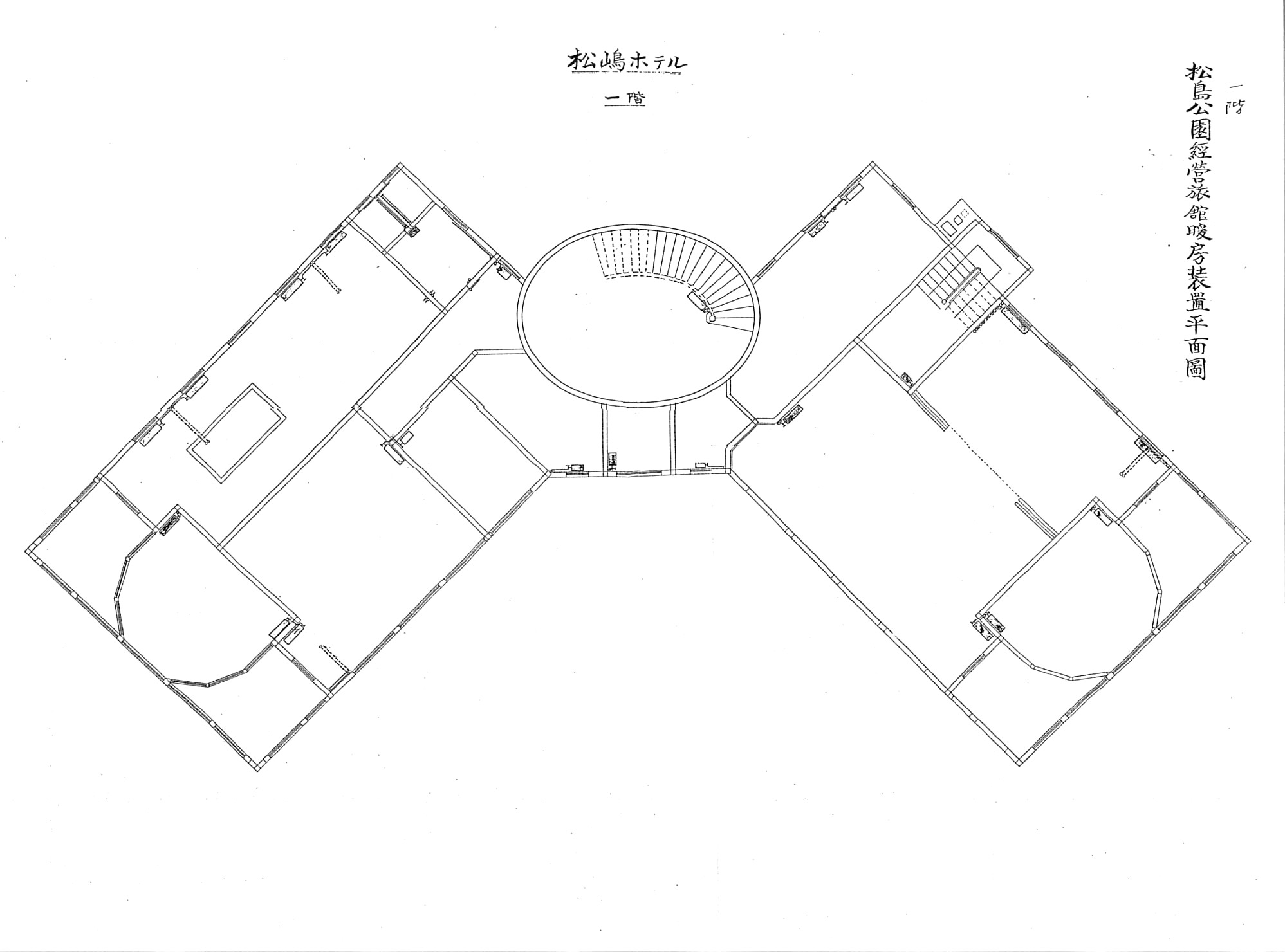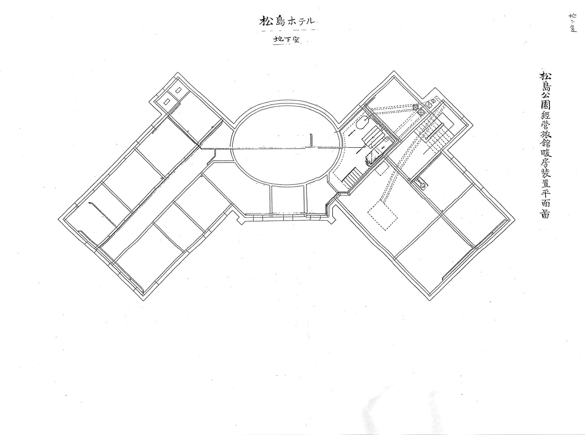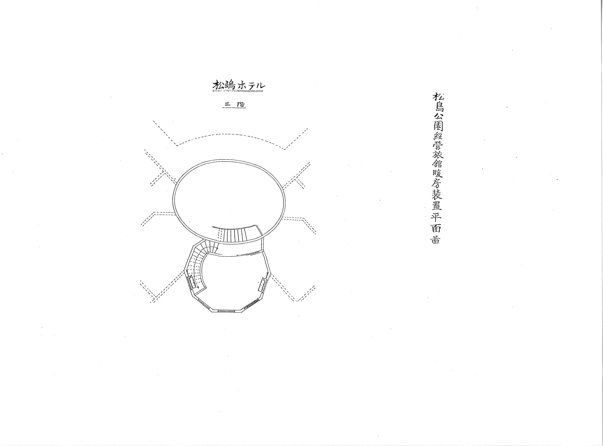 トレーシング用紙で残っている以下の図面には、最終的なホテル名称ではなく、「松嶋ホテル」と記してあります。