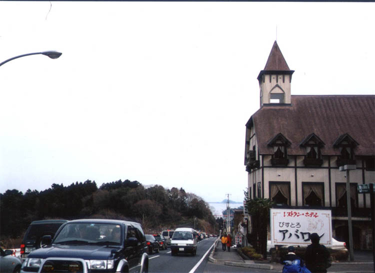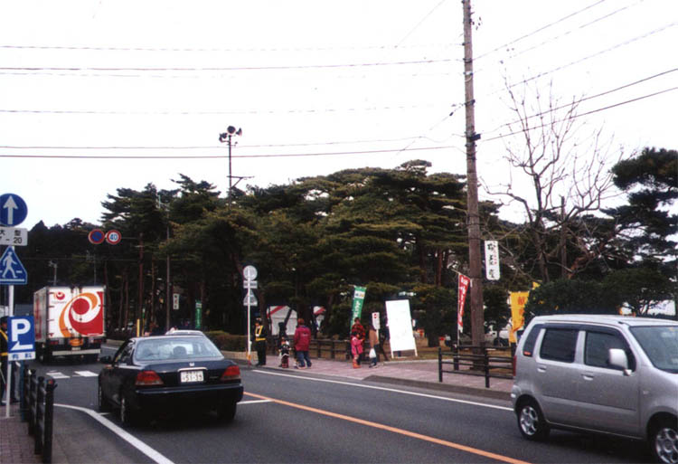 松島海岸に向う車列(長老坂)