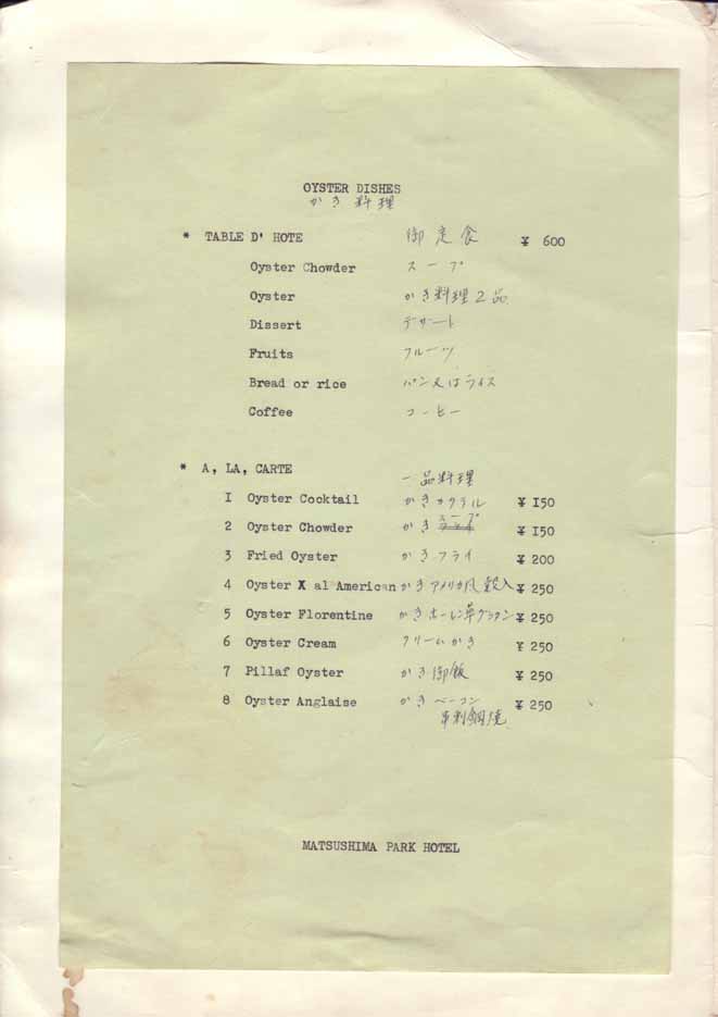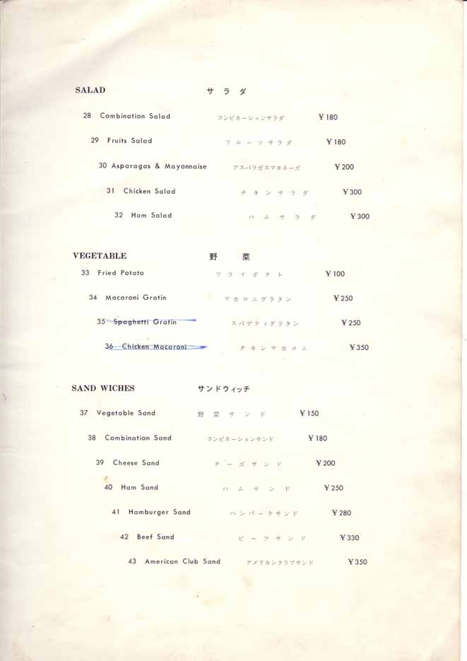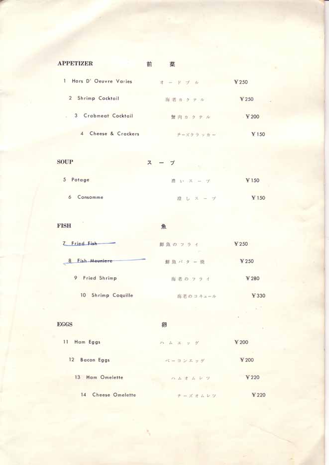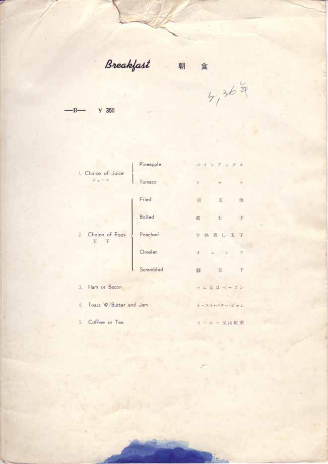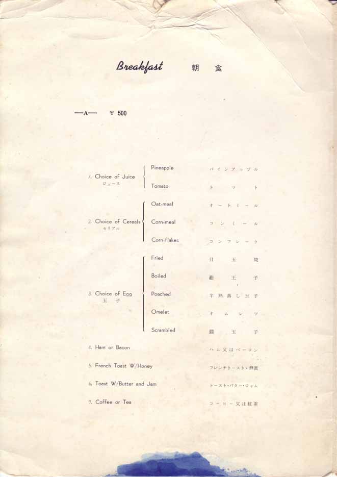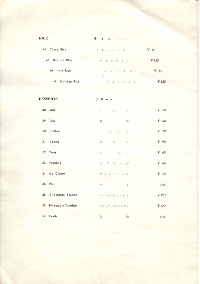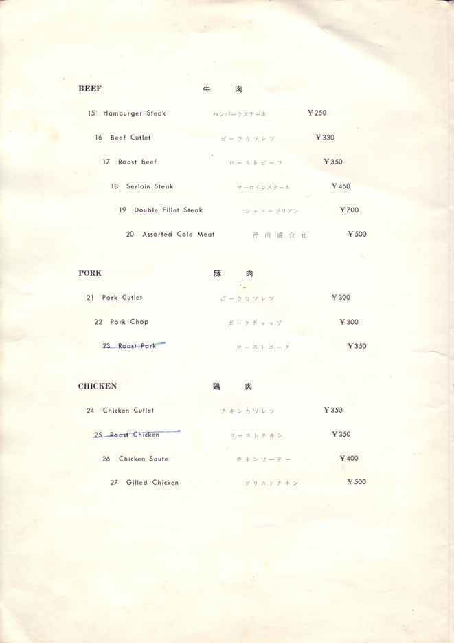 一つ一つ作成された戦前のメニューとは異なり、印刷されたメニューになっています。