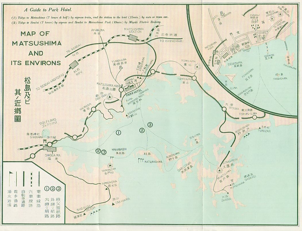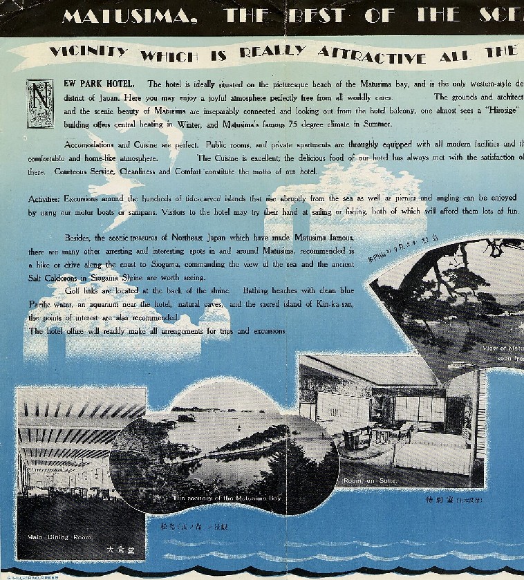 (松島町内で見つかった国内向けニューパークホテルのパンフレット。上総芳一さん所蔵)