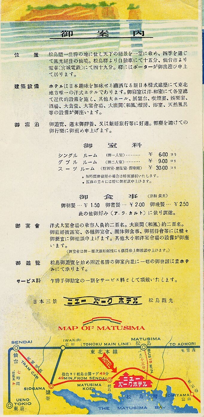 (アメリカ人コレクターより入手されたニューパークホテルのパンフレット。)