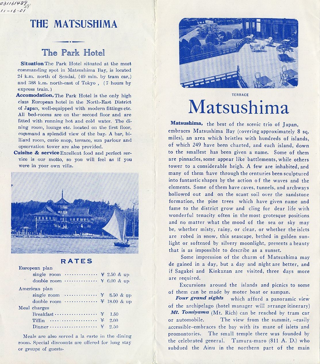 (オーストラリアのオークションで入手されたパークホテルのパンフレット)