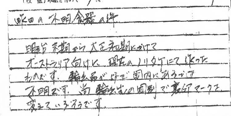 「パークホテルで働いていたおじいさんが記念にもらったカレーの器らしい食器」との事